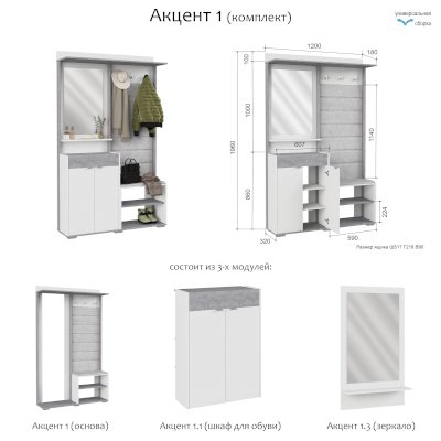 Прихожая Акцент 1 (Аквилон)