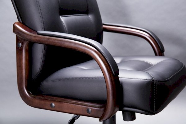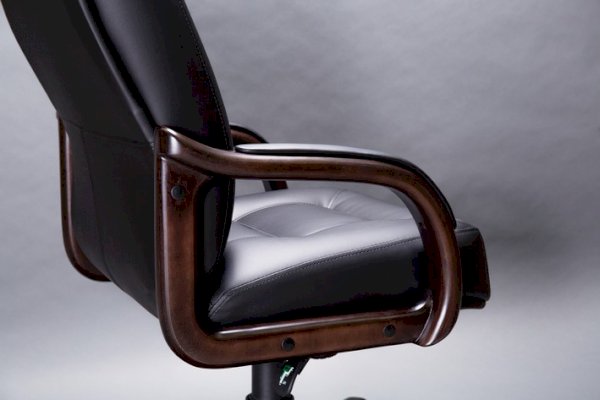 Кресло с высокой спинкой, с подлокотниками прямоугольной замкнутой формы с мягкими накладками обитыми в цвет кресла.