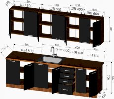 Габариты кухни 2600 мм (ШхВхГ):